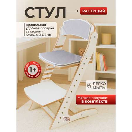 Стул школьника растущий Babystul детский с подушками серо-голубыми