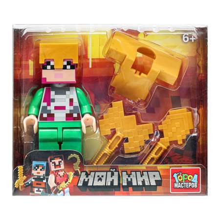 Конструктор фигурка с аксессуарами «Мой мир» ТМ «Город мастеров» понравится маленьким поклонникам популярной компьютерной игры.