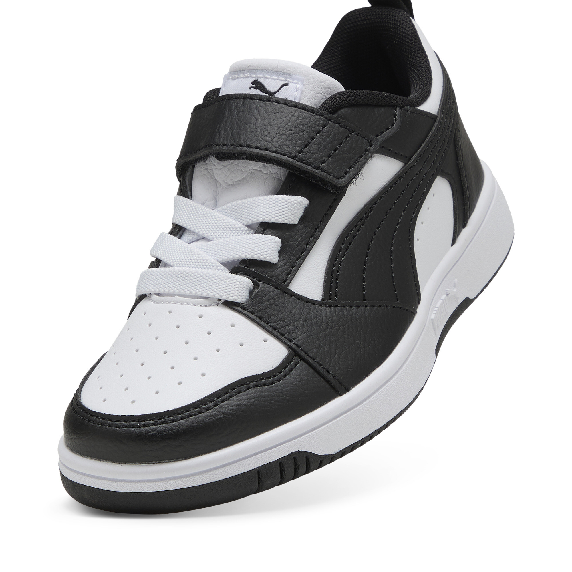 Отправляйтесь на игровую площадку в кроссовках Puma Rebound V6 спортивного стиля. Верх из переработанного материала и прочная подошва выдержат любые приключения юных атлетов, а воротник средней высоты обеспечит должную поддержку при выполнении разнонаправленных движений во время игры с товарищами по команде.