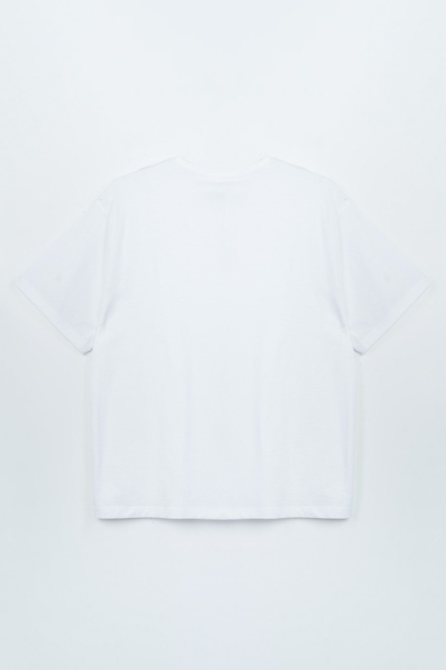Обратите внимание на нашу белую футболку оверсайз с красочной графикой спереди — идеальный выбор для тех, кто любит свободный повседневный стиль. Свободный крой oversize и круглый вырез горловины обеспечивают максимальный комфорт, а укрепляющая окантовка сзади на вырезе предотвращает его растягивание. Короткий рукав идеален для теплых дней, а оригинальная графика, вдохновленная фотоколлажами, добавляет оригинальности и художественности.