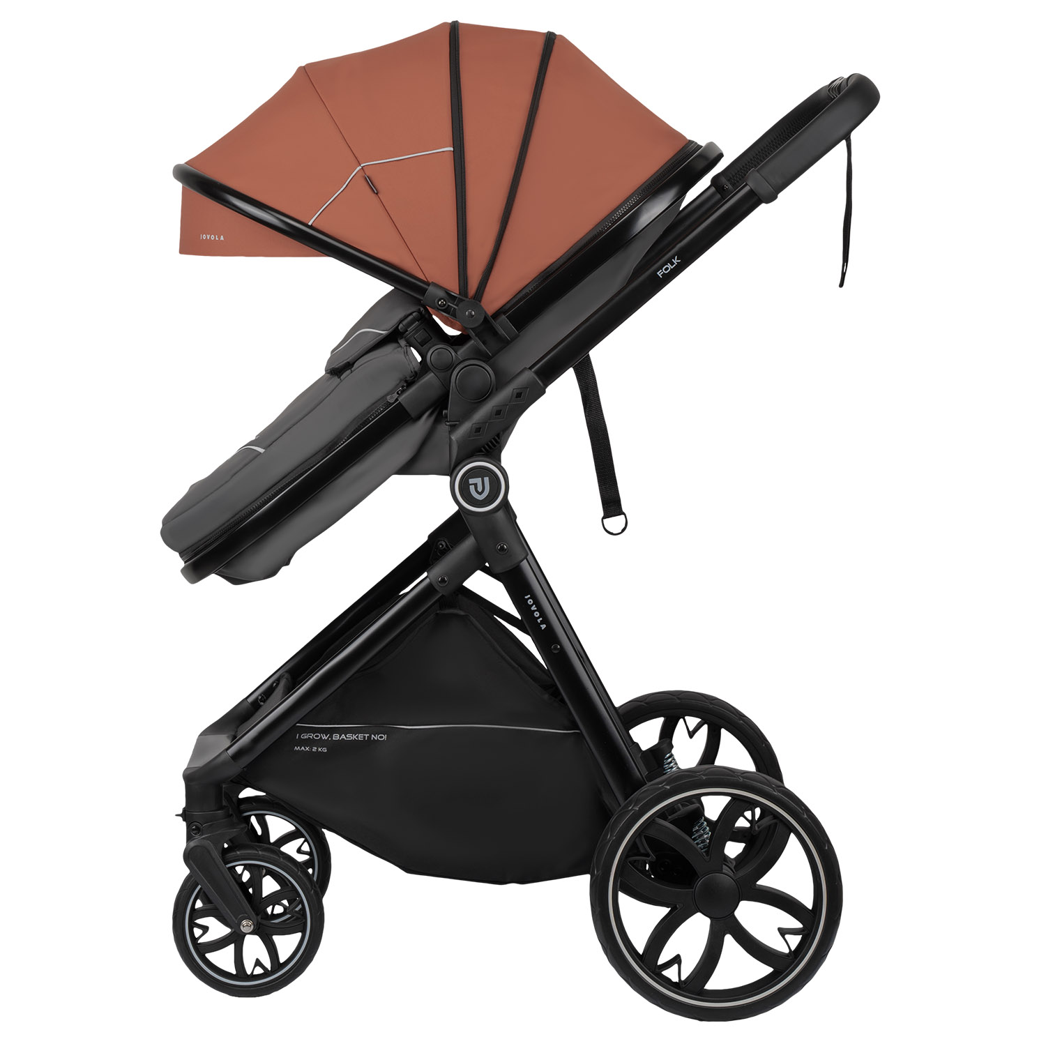 Практичная, функциональная коляска трансформер для новорожденных Jovola Folk предназначена для прогулок и перевозки детей с рождения до трех лет.Трансформеры не занимают много места и намного экономичнее модульных моделей. Один ее блок заменяет собой два блока универсальной детской коляски 2в1.