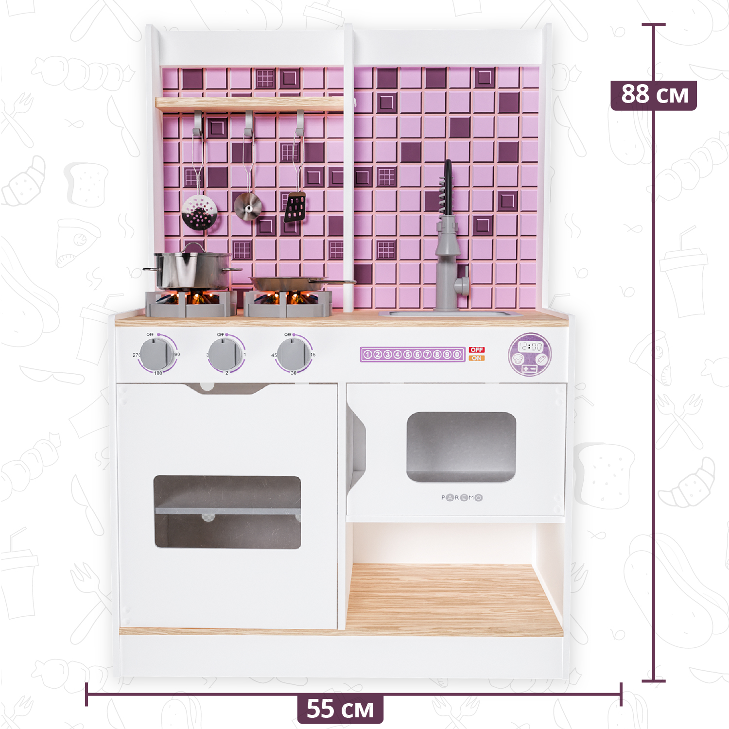 Детская деревянная игровая кухня PAREMO "Феста Виола", свет, звук, 6 предметов в наборе PK222-392