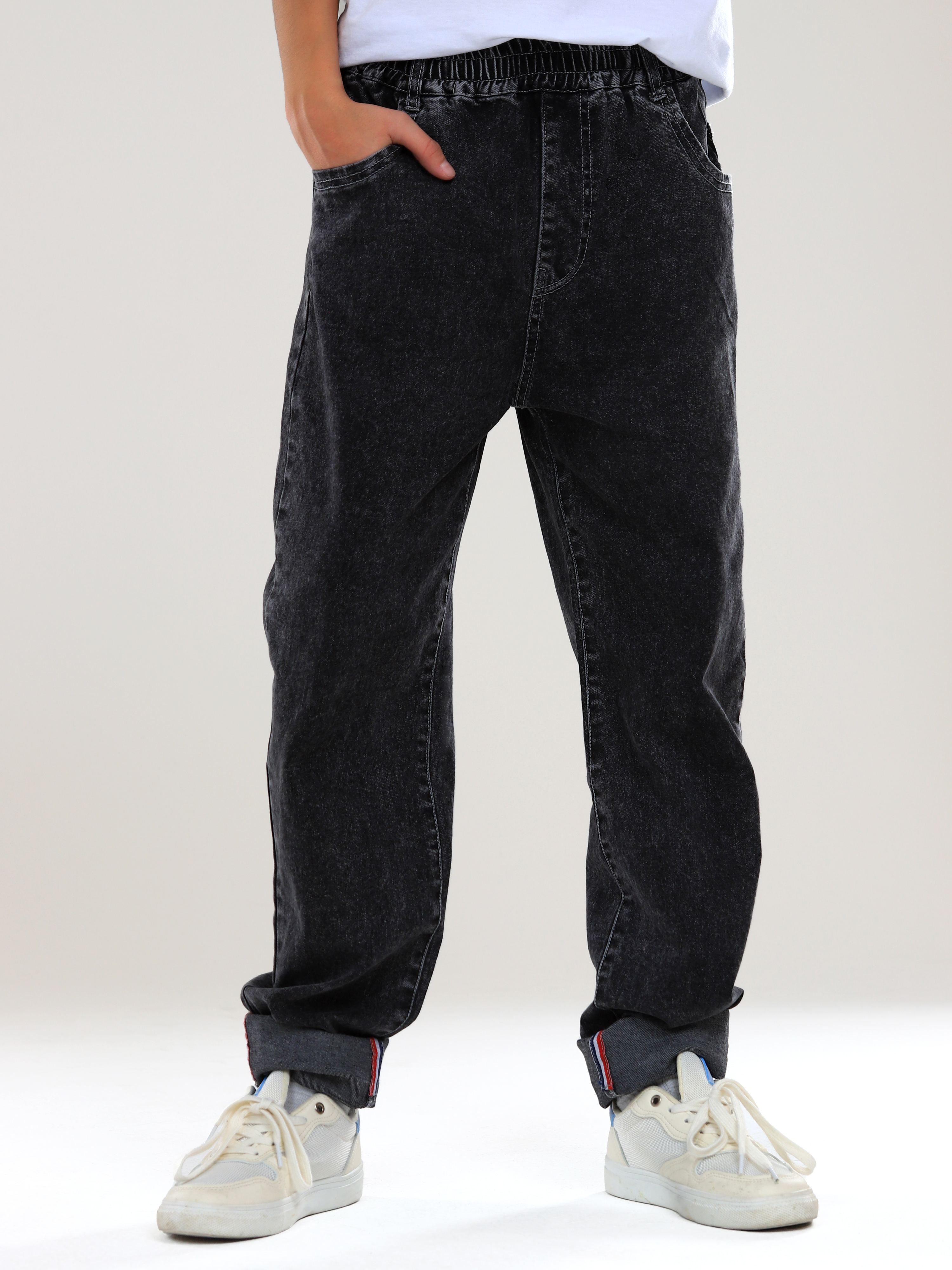 Стильные широкие джинсы для мальчика, фасон джинсы-бананы для мальчика.
