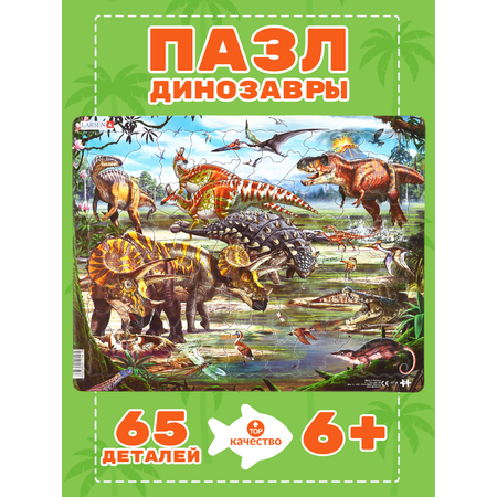 Новый пазл Динозавры от Larsen придется по вкусу детям, готовящимся к поступлению в школе или учащимся в первом классе! Виды сверху слева направо: Кетцалькоатлус, Микрораптор, Игуанодонт, Ламбеозавр, Тираннозавр Рекс, Трицератопс, Дромеозавр, Анкилозавр, Троодон, Птеродактиль, Крокодил, Ящерица, Вегавис, Стрекоза, Симолестес. Увлекательный пазл от знаменитой норвежской компании позволит детям познакомиться с различными видами динозавров. Пазл выполнен в ярких, красочных цветах, а материалы, из которых он сделан, отличаются высоким качеством и абсолютно безопасны для вашего ребенка. Игра с пазлами развивает мелкую моторику рук, внимание, логическое мышление и творческое воображение. В наборе содержится 65 элементов пазла. Размер собранного поля - 36.5x28.5 см.Характеристики