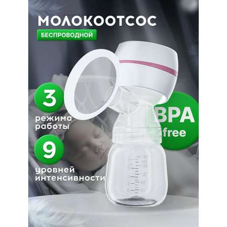 Молокоотсос - важная вещь, необходимая каждой будущей и новоиспеченной маме и настоящий подарок для быстрого и безболезненного сбора грудного молока. В отличие от ручных механических устройств, электрический молокоотсос упрощает процедуру сцеживания, помогает наладить лактацию и свести к минимуму риски возникновения лактостаза. Прибор имеет 9 уровней интенсивности и 3 режима: массаж (расцеживание молочных желез и стимуляция выработки молока), сцеживание (имитирует естественный процесс сосания новорожденного) и смешанный (для чувствительной груди и сосков). Универсальная насадка (накладка) плотно прилегает к груди любого размера. Электроника имеет сенсорный блок управления с подсветкой, индикатором заряда, кнопками переключения режимов и регулировки интенсивности, таймером и функцией памяти выбранных настроек. Молокоотсос работает относительно бесшумно, что позволяет его использовать в спальне или детской, даже если рядом спит малыш. Компактное устройство без трубок и проводов легко мыть, собирать и разбирать. Простая гигиена и уход позволяют брать его с собой в дорогу, машину, на прогулку. Мощный мотор работает от встроенного аккумулятора до 2,5 часов непрерывно. Зарядка осуществляется через USB кабель от розетки, ноутбука и ПК, повербанка и др. В набор к молокоотсосу входит запасной клапан и силиконовая соска для кормления младенца, повторяющая форму женской груди. Бутылочка с мерной шкалой 180 мл и крышкой в комплекте изготовлена из пластика без содержания бисфенола А и безопасна для новорожденных детей. Служит одновременно молокосборником и аксессуаром для кормления. Стандартный разъем бутылки подходит к большинству брендов – Philips Avent, Medela, Kunder.