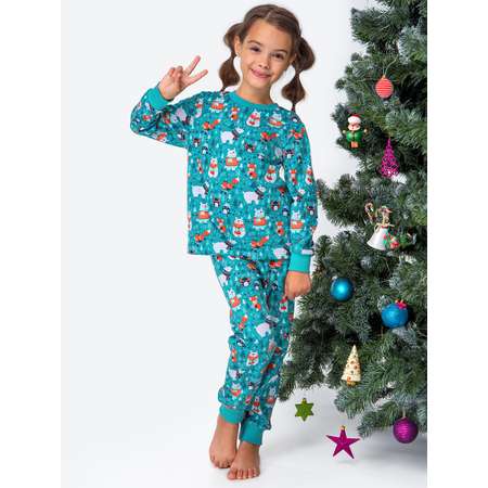 Детская пижама с брюками выполнена из натурального 100% хлопка. Свободный крой не сковывает движений и позволяет ребенку всегда оставаться активным, а яркий бирюзовый цвет и праздничный принт создают уютную атмосферу и поднимают настроение. Пижамка для мальчиков и девочек станет отличным подарком на Новый год и Рождество.