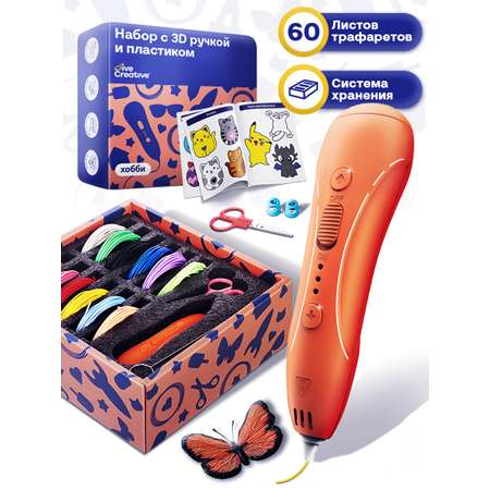 Комплект включает в себя низкотемпературную 3 д ручка, 12 мотков цветного PCL пластика, а также книгу с инструкцией и трафаретами формата А5, что позволяет создавать удивительные 3D-изделия.