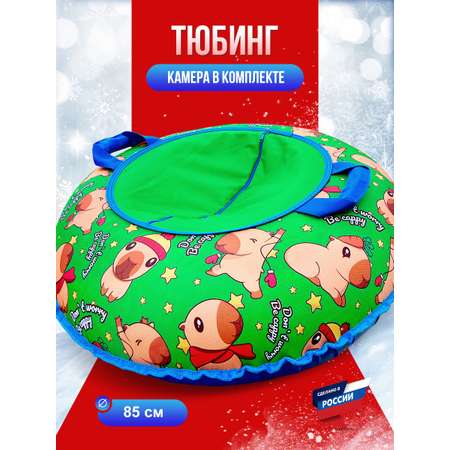 - Заказала тюбинг 85 см дочке - это любовь! Принт с капибарами просто волшебный. Оценили удобные ручки - даже в варежках держаться удобно. Запаха нет совсем, материал приятный на ощупь. После накачки важно хорошо закрутить ниппель.