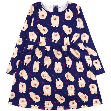 Платье с длинными рукавами для девочки розового цвета, рисунок собачка. Изготовлено из ткани интерлок 100% хлопок. Платье отрезное по линии талии.