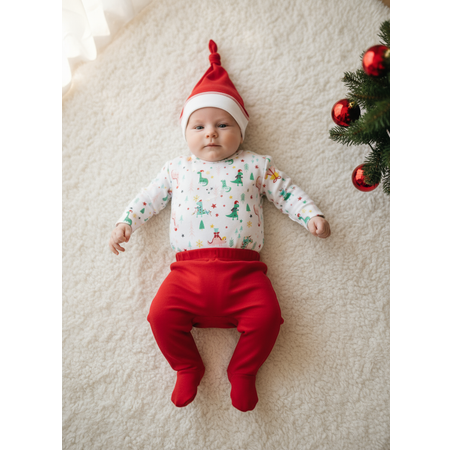 Комплект новогодний фабричного производства создан специально для малышей, чтобы обеспечить комфорт и тепло в первые месяцы жизни. Этот предмет детской одежды отлично подходит для новорожденного и младенца. В набор входят стильные ползунки, которые можно сочетать с кофтой или боди, создавая удобный и нарядный комплект для ребенка. Особое внимание уделено материалам и пошиву, что гарантирует качество и безопасность для нежной кожи малыша. Красный цвет делает изделие подходящим для праздничного и новогоднего настроения, а колпачок добавляет нарядности и модного акцента. Вещь станет отличным подарком на новый год. Такой предмет одежды удобен для нательного использования, не стесняет движений и подходит как для девочки, так и для мальчика.