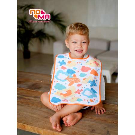 Большой махровый слюнявчик ПОМА - это незаменимый помощник для маленьких гурманов, который позволяет легко и удобно есть любимые блюда. Большой размер 6 месяцев+.