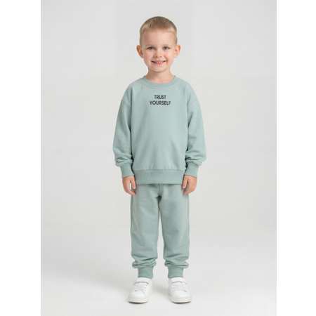 Комплект одежды для мальчика KUZA состоит из свитшота и брюк. Свитшот на удобных манжетах из кашкорсе, спереди стильный принт, выполненный гипоаллергенными красками. Брюки средней посадки, на манжетах, без карманов. Костюм для мальчика изготовлен из 2-х ниточного петельчатого футера с эластаном премиум качества пенье (92% хлопок, 8% эластан).