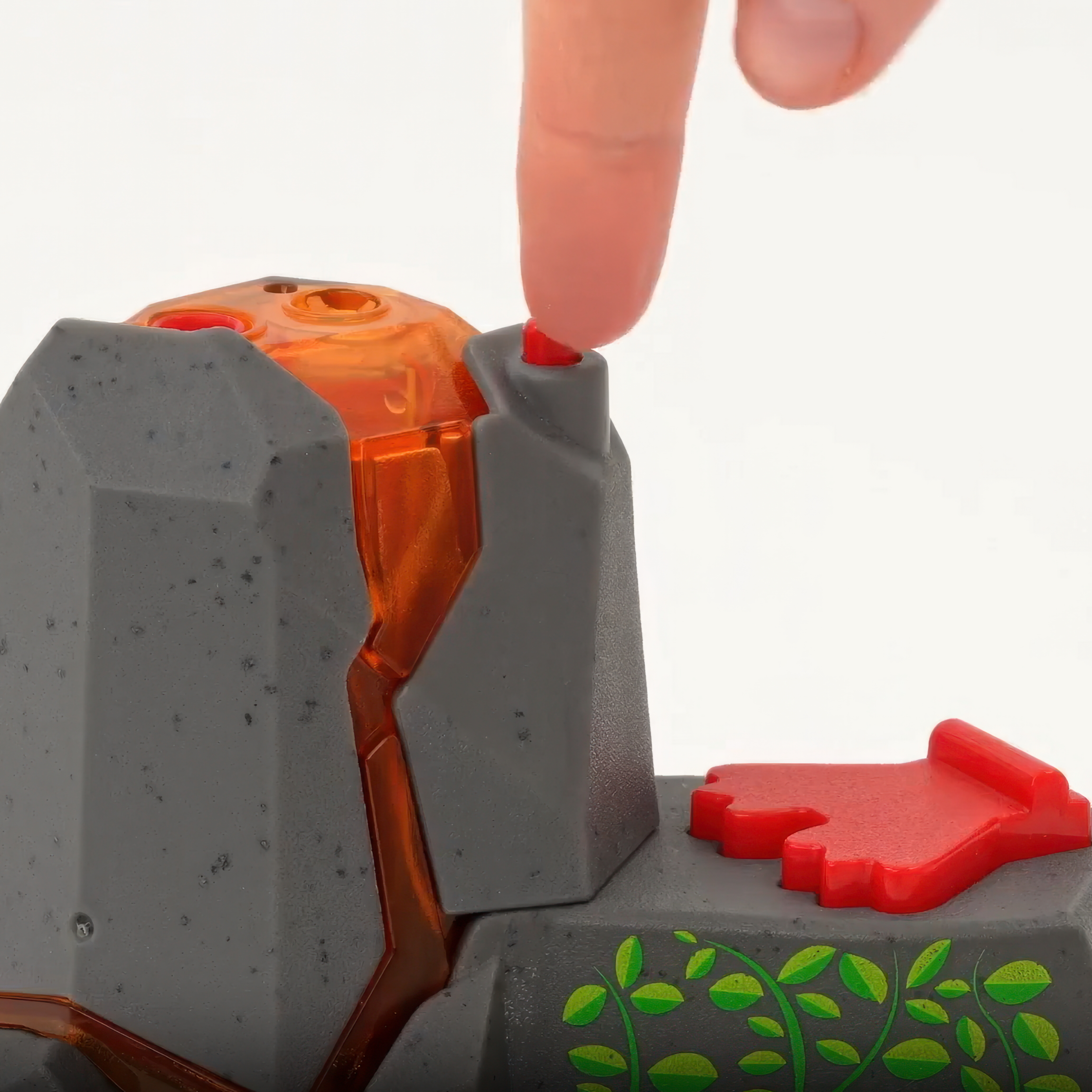 Действующий вулкан готовится к извержению, добавляя атмосферу доисторического приключения. Кнопка на вершине кратера приводит вулкан в движение: раскаленная лава начинает светиться, струится пар. Вершина вулкана взрывается, и среди этого зрелища тираннозавр стоит неподвижно, гордо обозревая свое владение.