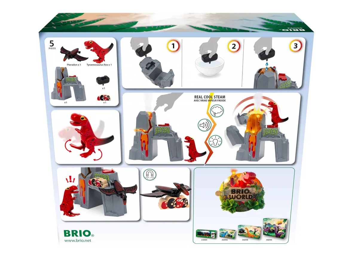 Динозавр и извергающийся вулкан BRIO со светом, звуком, паром 5 элементов