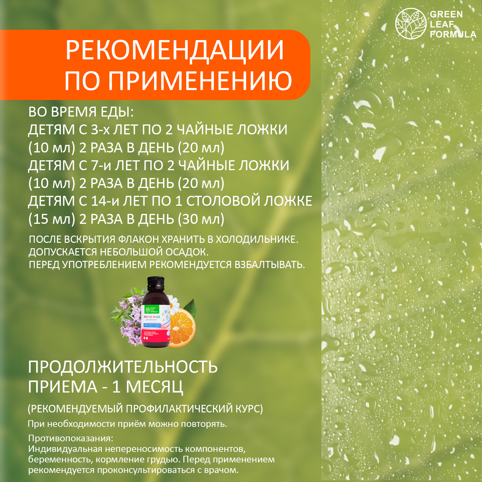 Детский сироп от кашля Green Leaf Formula от простуды и гриппа для иммунитета детей от 3 лет растительный
