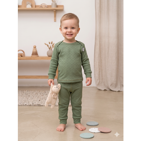 Пижама для малыша в эко-стиле. Для создания комплекта использовано самое лучшее полотно интерлок с фактурой выстав игл (в рубчик), качества премиум 100 % хлопок сорта пенье и мягкое гипоаллергенное крашение. Комплект нательного белья для малыша состоит из кофточки с длинным рукавом и брючек. Модель пижамы с брючками приятна к телу, не садится, даже после множества стирок, не деформируется, "дышит", не вызывает на коже ребенка раздражений и аллергии. Комфортное одевание обеспечивает глубокий запах на плечах, позволяющий раскрыть кофточку на весь объем груди, при этом край обработан бейкой на машине с закрепляющей строчкой. Это исключает деформацию горловины в процессе носки. Пижаму детскую можно использовать для сна, отдыха или как домашнюю одежду. Костюм со штанишками сделает сон комфортным и приятным. В такой одежде вашему ребенку будет необычайно комфортно и удобно. Дышащая, свободная и мягкая модель подходит для лета, осени, весны и зимы. Однотонный модный хлопковый костюмчик подойдет как для девочки, так и для мальчиков.