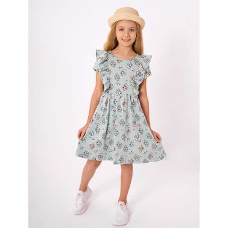 Платье с короткими рукавами для девочки с принтом белочка. Изготовлено из ткани интерлок 100% хлопок. Платье для девочки подходит для детского садика, для дома и для прогулок.