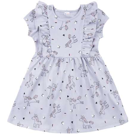 Платье с короткими рукавами для девочки с принтом единорожки. Изготовлено из ткани интерлок 100% хлопок. Платье подходит для детского садика, для дома и для прогулок.