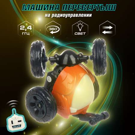 Компактная радиоуправляемая машина с вращающейся на 360 градусов передней подвеской и эффектной подсветкой кабины дополнит автопарк ребенка.