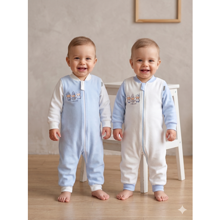 Комплект нательных комбинезонов для малыша -2 шт с открытой ножкой изготовлен из мягкого трикотажа - футер 2-х нитка с мягким начесиком по изнанке из 100% хлопка. Полотно гипоаллергенно, приятно к телу, не садится даже после множества стирок, не деформируется, "дышит". Модель детских комбинезонов для новорожденных с манжетами-напульсниками на ножках и ручках создает дополнительные припуски на вырост. Набор слипов отлично подойдет как поддева в демисезон, так и домашняя одежда для новорожденного в любое время года. Оба комбеза на молнии, которая уходит в ножку, позволяя легко переодеть малыша, не вызывая дискомфорта у него. Защитная планка комбинезона на молнии по всей длине - это дополнительная безопасность, которой мы придаем особое значение. Горловина изделия оформлена воротничком под горлышко. У всего размерного ряда выполнены швы внутри. Хлопковый детский нательный комбинезон станет замечательным дополнением к теплому комбинезону или конверту. Комбинезоны для малышей (человечки) станут отличной основой комплекта в подарок новорожденному как девочке, так и мальчику. Однотонные модные хлопковые костюмчики удобны для сна и бодрствования грудничка, подойдут для милой семейной фотосессии. Комплект подойдет на выписку из роддома, в подарок или как повседневная одежда. Дышащая, свободная и мягкая модель подходит для лета, осени и весны, а также как поддева для зимних прогулок вашего пупса. Комбинезон утеплённый для новорождённых будет долго радовать маму и грудничка своим качеством и практичностью.