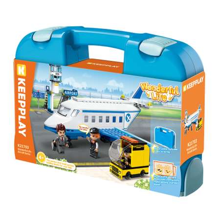 Главный элемент — пассажирский самолёт. Для наземного обслуживания предусмотрена машина-погрузчик. Рядом со взлётной полосой возвышается башня диспетчера, откуда следят за взлётами и посадками. Атмосферу аэропорта дополняет указатель, направляющий к нужным терминалам. Три фигурки — пассажир с багажом, стюардесса, готовящаяся к рейсу, и водитель погрузчика — позволяют разыгрывать разнообразные сюжеты: регистрация на рейс, посадка, погрузка багажа и управление полётами.