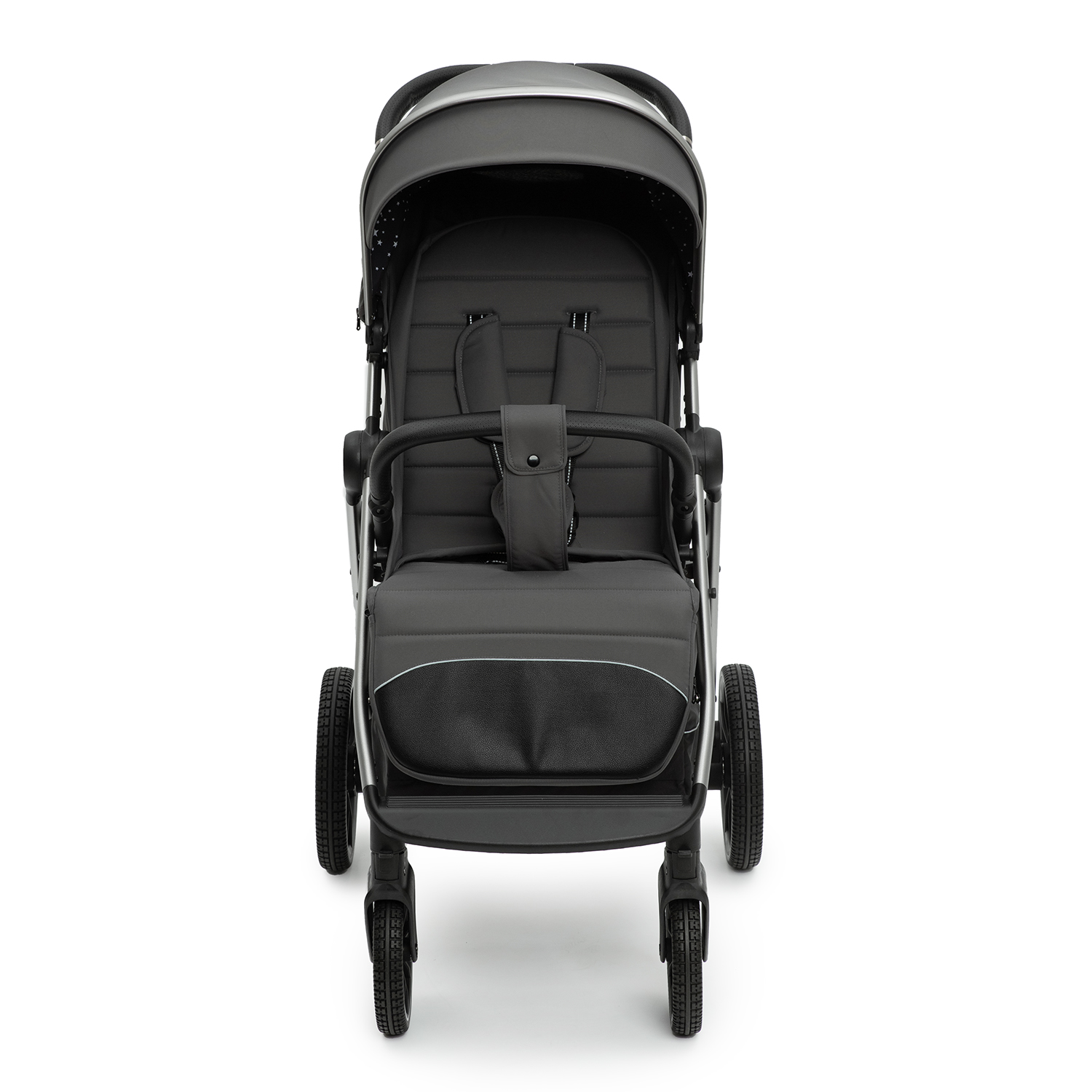 Спинка легко раскладывается в горизонтальное положение — идеально для сна на свежем воздухе. Просторное сиденье оснащено пятиточечными ремнями безопасности с мягкими накладками.