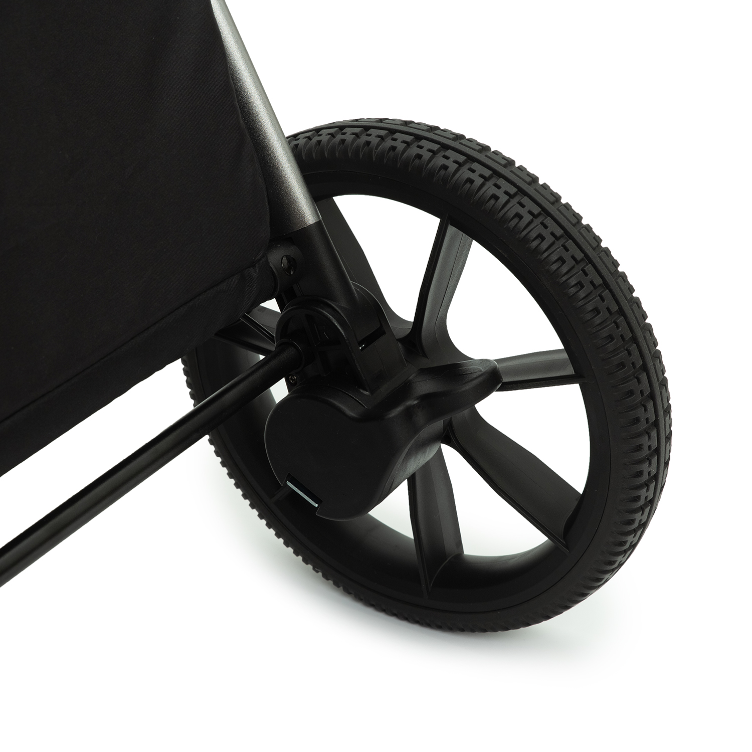 Лёгкие прорезиненные колёса с амортизацией и возможностью фиксации обеспечивают плавный ход и манёвренность на любых поверхностях. Обивка полностью съёмная — для простоты ухода и чистоты.