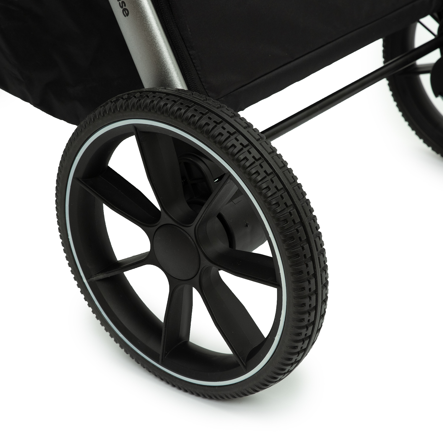 Лёгкие прорезиненные колёса с амортизацией и возможностью фиксации обеспечивают плавный ход и манёвренность на любых поверхностях. Обивка полностью съёмная — для простоты ухода и чистоты.