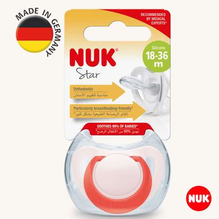 NUK STAR Соска пустышка ортодонтическая силиконовая разм. 3 (для детей от 18 мес.), 1 шт. в контейнере, розовый