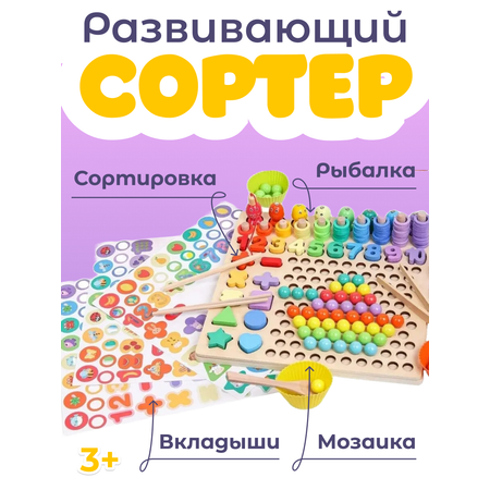 Деревянная мозаика-сортер (32х31х8) "Считаем до 10" в коробке ( Арт.ИД-6304)