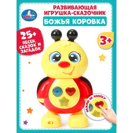 Вашего малыша приведёт в восторг эта игрушка в виде забавной божьей коровки с тремя крупными кнопками разной формы. Он с удовольствием будет нажимать на эти кнопки и слушать увлекательные сказки, весёлые песенки и забавные звуки.