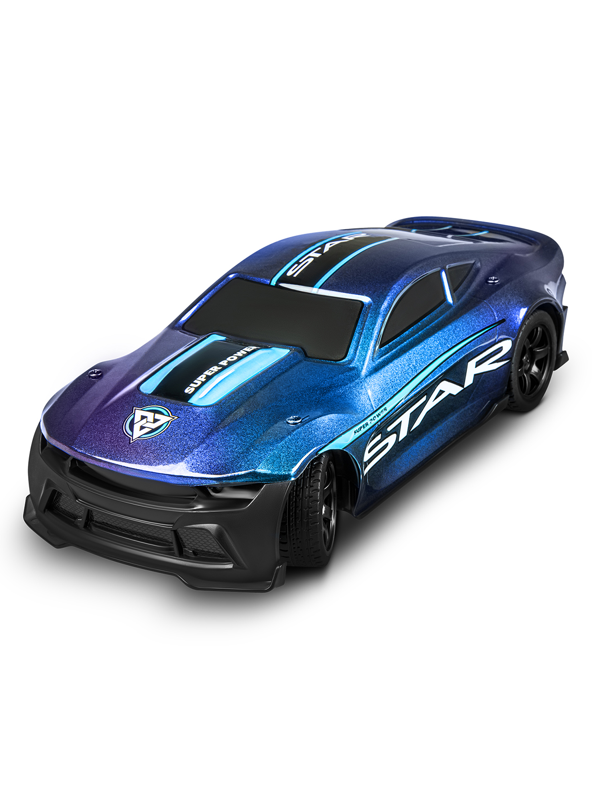 Дрифт машина эффектно выглядит, благодаря покрытию хамелеон . Игрушечная машина для дрифта оснащена подсветкой фар и днища, что позволяет проводить соревнования в темноте.
