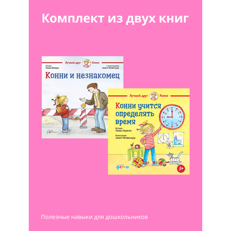 В комплект входят бестселлеры серии «Лучший друг — Конни», которые развивают самостоятельность и организованность.