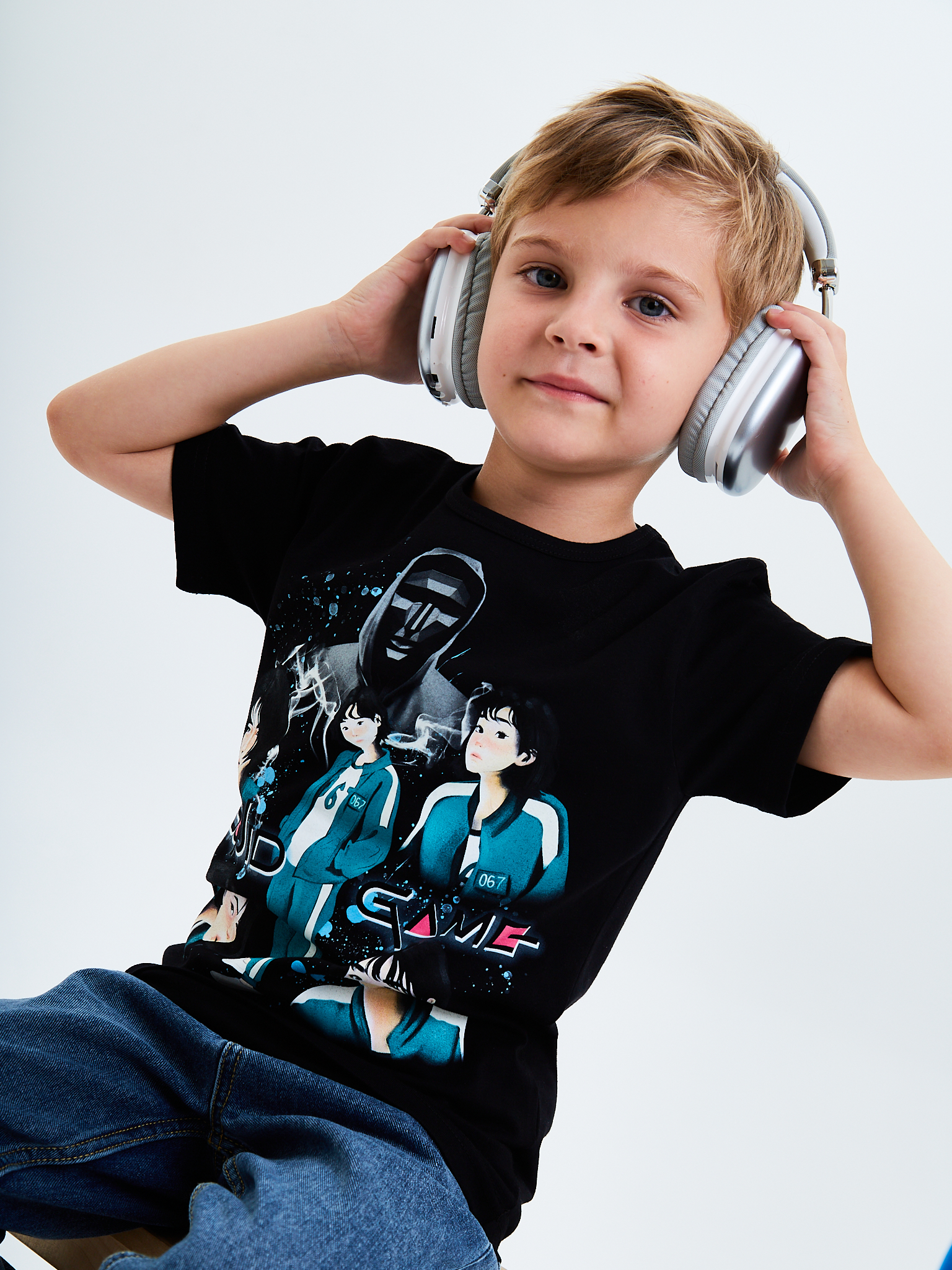 Футболка с коротким рукавом и светящимся в темноте и в ультрафиолете принтом с изображением персонажей из всемирно известного веб-сериала "Игра в кальмара". Это универсальная и стильная одежда, которая подойдет для повседневного использования в школе или для особых случаев. Изготовленный из высококачественного хлопка с добавлением лайкры. При носке не скатывается, на садится, не деформируется. После стирки рисунок остаётся таким же ярким!