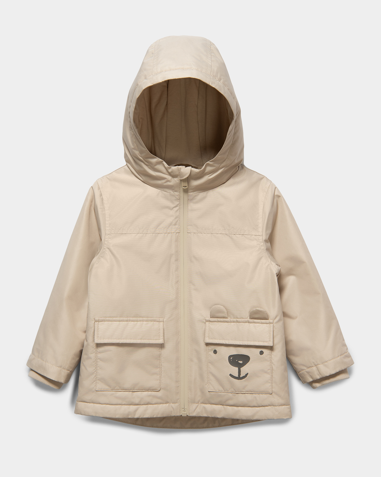 Водоотталкивающая куртка для мальчика Baby Go бежевого цвета, с объёмным декором на кармане.