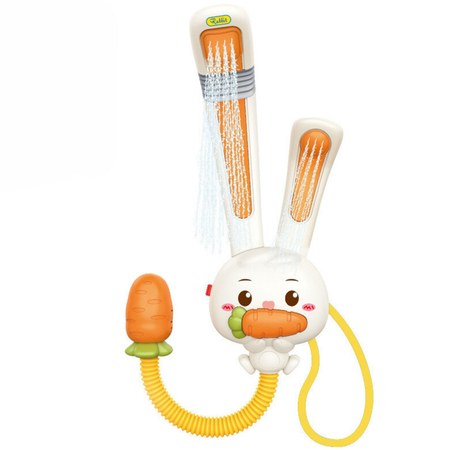 Игрушка для ванной зайчик. Насладитесь двумя уникальными функциями этой игрушки, которые поразят вас своей удобностью и оригинальностью. Его две насадки в форме ушек превращаются в волшебный душ: большое ушко можно вращать, создавая нежный напор воды, словно летний дождь, а маленькое ушко легко отсоединяется и становится полноценным душем с мягким потоком воды.