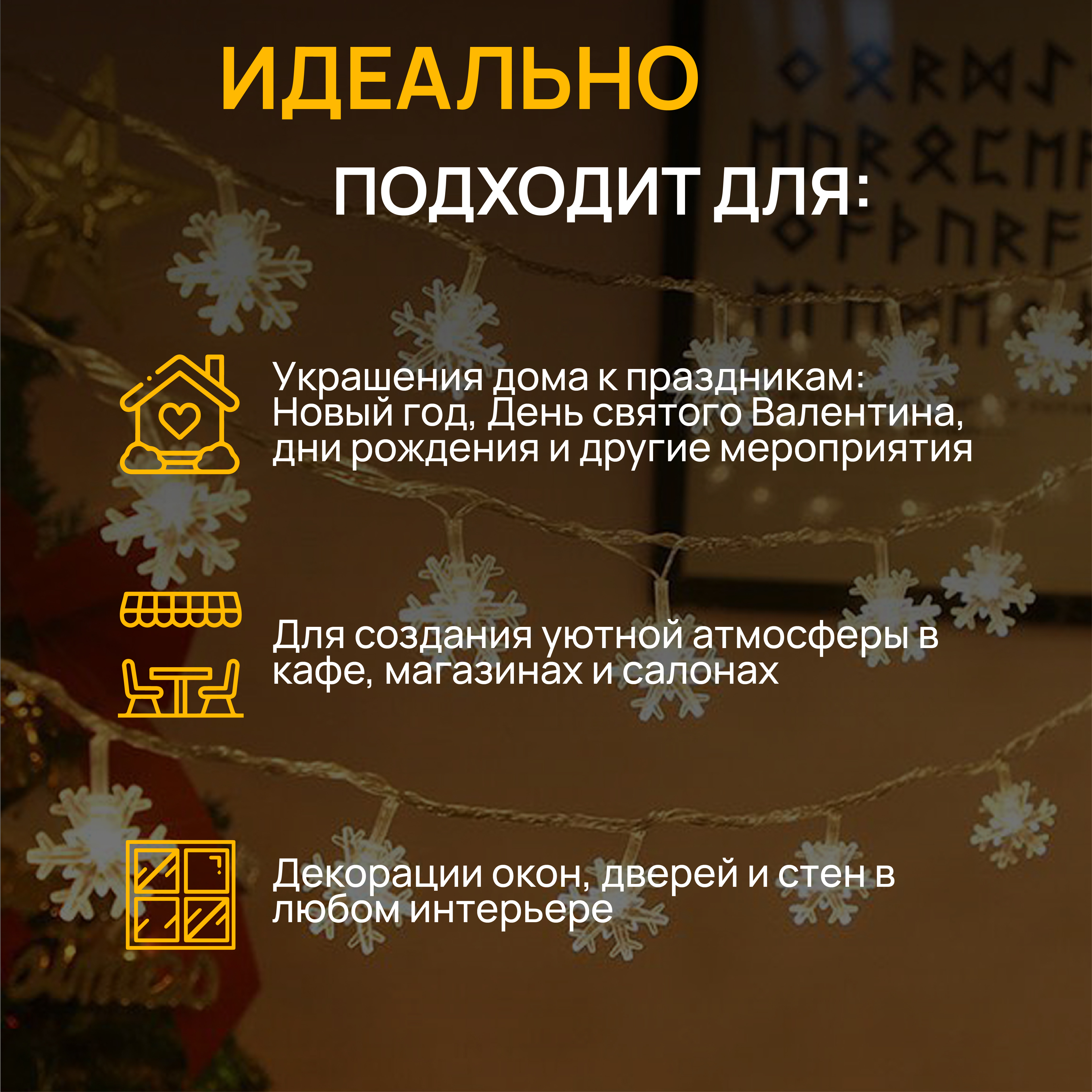 Гирлянда снежинки станет прекрасным подарком для вас и для ваших близких, позволяя создать незабываемую атмосферу на Новый год и другие праздники!