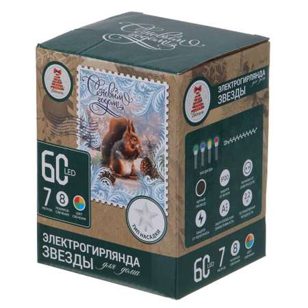 Цена на Светодиодная гирлянда Сноубум Звезды 7 метров 60 Led 8 режимов - 479 ₽.