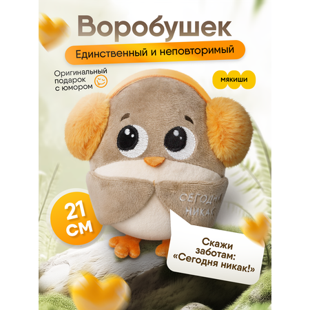 Мягкая игрушка Воробушек-социофобушек — прикольная мягкая игрушка с надписью для офиса и отличный подарок подростку, мужчине, девушке.