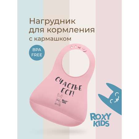 Нагрудник Счастье есть ROXY-KIDS для кормления мягкий с кармашком и застежкой