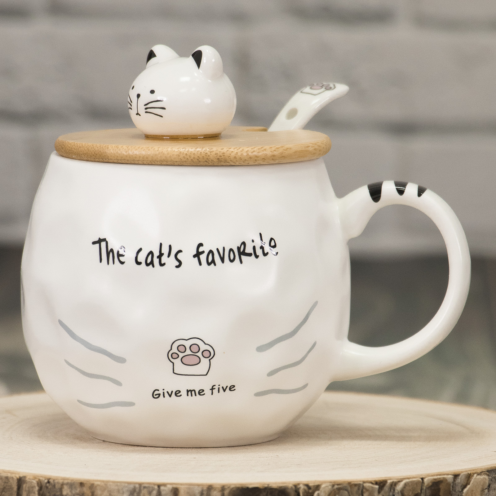 Кружка ЭВРИКА Котик с крышкой и ложкой №1