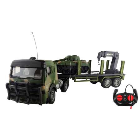 Радиоуправляемый грузовик-трейлер + танк CityTruck 1:18 - 551-B2 - это сразу 2 игрушки в одном комплекте. И хотя радиоуправляемой является только одна из них, такой набор, скорее всего, понравится каждому мальчику. Помимо возможности дистанционного управления машина может издавать звуковые и световые сигналы. При желании танк можно убрать с платформы, а на его место положить любой небольшой груз. Данная игрушка может стать хорошим дополнением к различным играм сюжетно-ролевого типа.