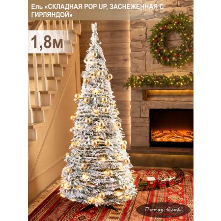 Цена на Елка складная Pop up Поезд Ёлок Заснеженная с гирляндой 180 см - 19800 ₽.