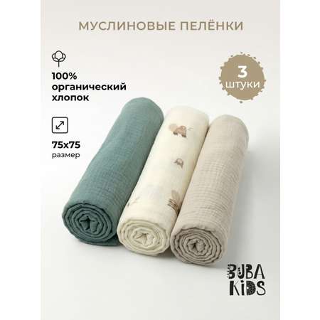 Цена на Пелёнка BUBA KIDS Бобры на хуторе/Полынь/Миндаль муслин 75х75 см 3 шт. - 4080 ₽.