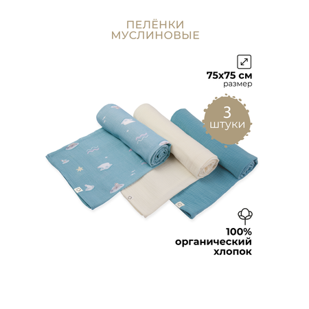 Пелёнка BUBA KIDS Арктика/Сливочный/Туман муслин 75х75 см 3 шт.