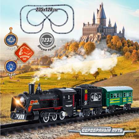 Игрушечная железная дорога с набором вагонов, игрушечными дорожными знаками, светом, звуком и эффектом пара отлично подойдёт для сюжетно-ролевых игр.