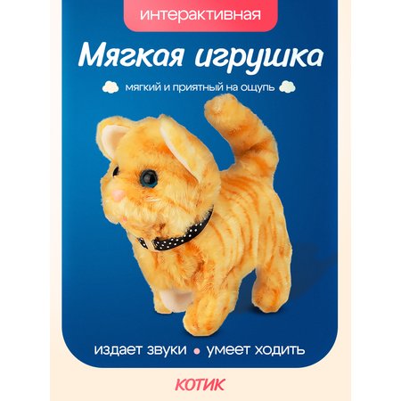 Игрушка интерактивная мягкая КОТИК (9х16,5см, ходит, звук, AA*2 не копмл.) бежевый (арт. И-8106)