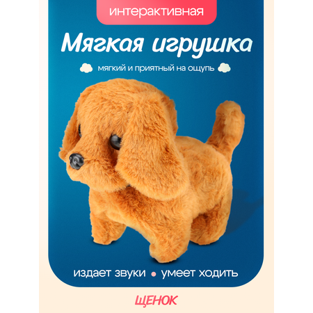 Игрушка интерактивная мягкая ЩЕНОК (9,5х14см, ходит, звук, AA*2 не копмл.) коричневый (арт. И-8103)