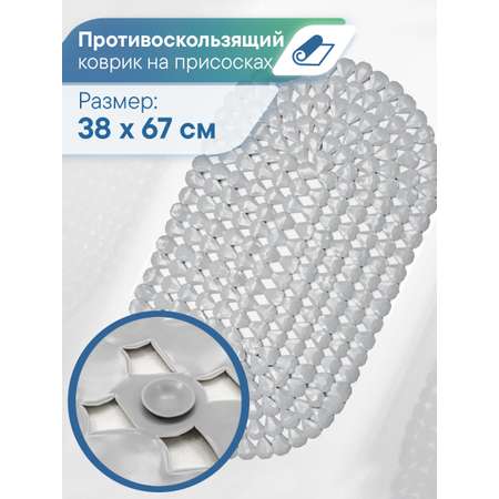 Добрый день! Рекомендуем следовать инструкции указанной на этикетке товара: перед применением обработайте изделие и поверхность ванны теплым мыльным раствором, не содержащим хлор, ополосните чистой водой. После этого закрепите изделие с помощью присосок к влажной поверхности ванны, после этого наполните ванну водой. При необходимости, повторно закрепите присоски под водой. Наилучшая фиксация присосок достигается только на ровной, гладкой и чистой поверхности ванны. После применения аккуратно открепите изделие с поверхности ванны, промойте под проточной водой и тщательно просушите. Для Вашего удобства, в карточке товара, разместили иллюстрацию с инструкцией по фиксации коврика, также прочность сцепления зависит от покрытия и формы Вашей ванны. Возможно, Вас заинтересуют другие товары нашего бренда Вилина на Детском мире.