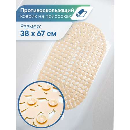 Коврик для ванной VILINA противоскользящий на присосках 38х67см "Капля" бежевый
